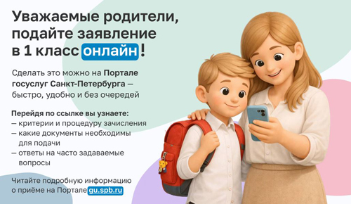21 апреля в 9:00 начало приёма заявлений ГОЛ «Солнышко». Документы можно подать на портале Портале «Государственные и муниципальные услуги (функции) в Санкт-Петербурге» или на личном приёме в гимназии (пр. Энтузиастов, корп. 2, кабинет №20) по графику.